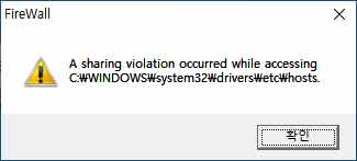 FireWall 오류 A sharing violation occurred while accessing 해결방법