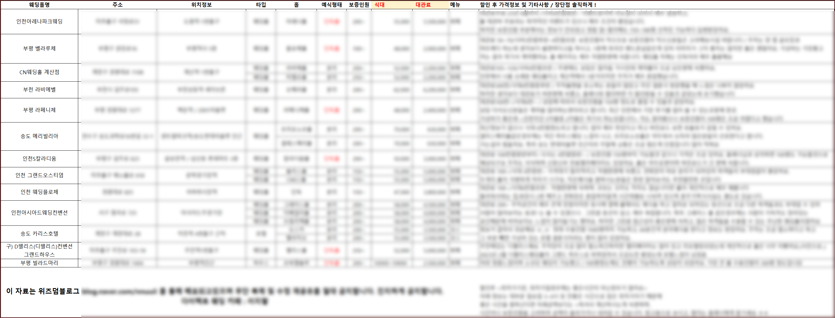 2023년 인천 웨딩홀 리스트 총정리 :: 할인 후 비공개 가격과 장단점 솔직히 싹 기재